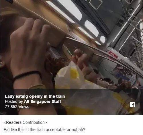 新加坡的城市环境和公民素质一直被夸赞。街道干净敞亮,搭乘扶手梯时人们也会很自觉的遵守“左立右行”,等地铁时人们也会有秩序的排队。但今天新加坡地铁车厢里一女子“公然”吃东西的不文明行为视频在Facebook传开。