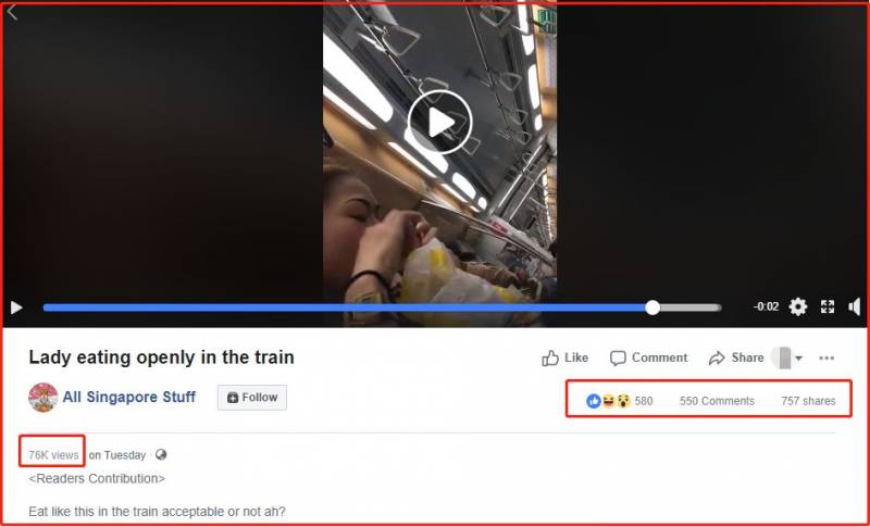 昨天(11月28日),有网友在Facebook上发布了一小段视频。视频中,一名女子在新加坡地铁上公然吃东西。然鹅,大多数的网友却一边倒地“讨伐”这名拍摄视频的人。