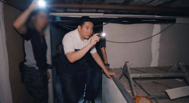 视频显示,当局接获情报指上述店屋疑匿藏逾期逗留者,于是展开深夜突击,来到一间看似是杂货店的店屋,发现店屋二楼竟隔出约60间房间。房间之间穿插著多条走道,犹如迷宫,甚至还有暗格,执法人员仔细检查每个角落,不断拍打墙壁,确保找出所有隔间,将逾期逗留者绳之以法,部长也拿着手电筒带着执法人员查探店屋阁楼等地方,寻找漏网之鱼。