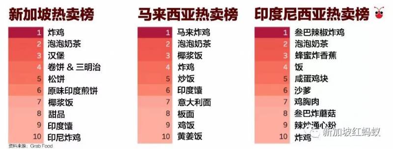 再来看看GrabFood所发布的新加坡、马来西亚与印度尼西亚2018年外卖热榜内容。