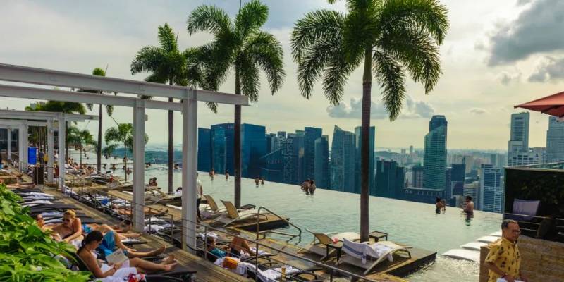 独特的建筑造型,畅享滨海湾美景的无边泳池