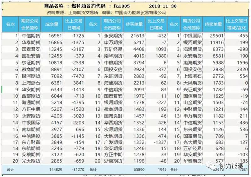 广告燃料油期货合约总持仓增仓下跌,增加68492手至277542手,成交量增加217590手至4,454,590手。上海期货交易所2019年5月合约前20名机构的主力合约持仓报告显示,机构持仓为净空仓16726手,比上周增加9982手。持仓详细情况见下图: