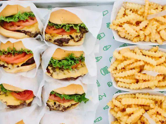 在美国纽约大受欢迎的汉堡包店Shake Shack。