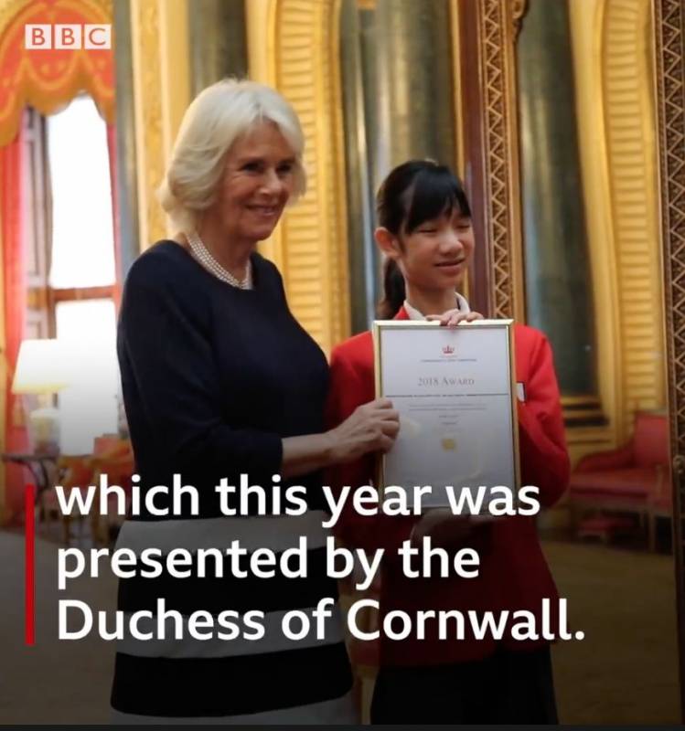 这位天才少女更是被邀请到了白金汉宫,BBC也为她做了独家报道。在白金汉宫,英国公爵夫人亲自为她颁发了英联邦写作大赛的奖项。