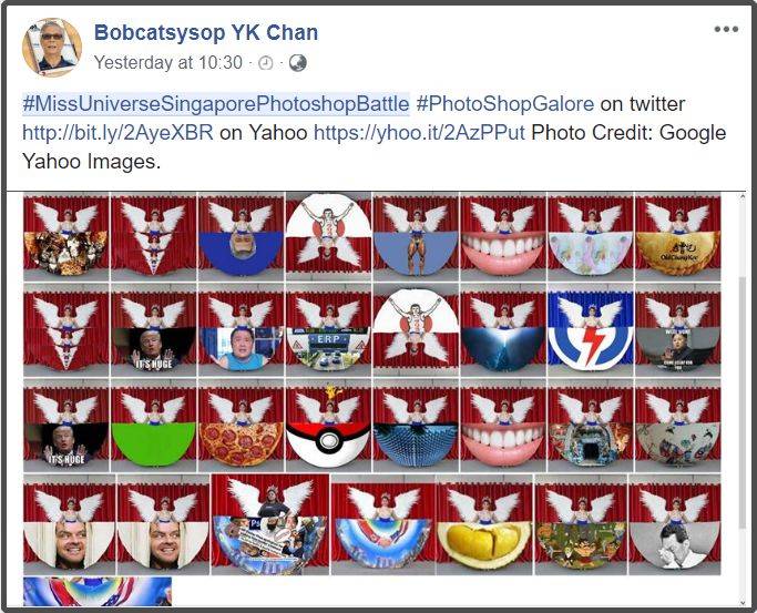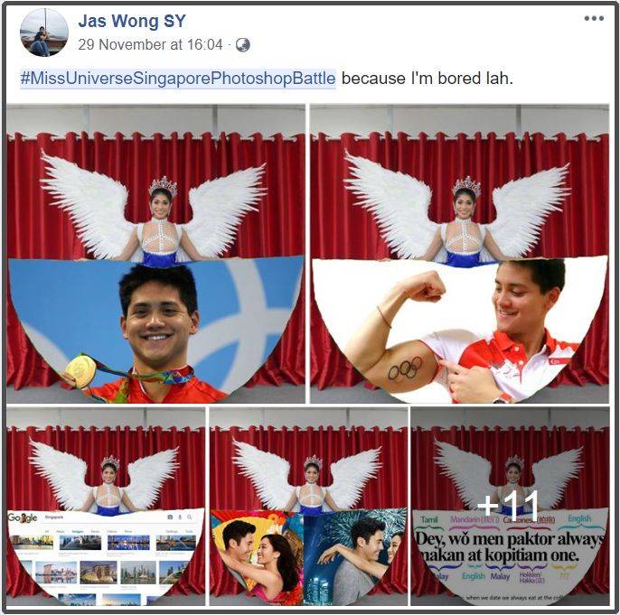 对此设计,网友们除了diss服装设计得不够“新加坡”,还脑洞大开,开启了疯狂p图。Facebook上还出现了#MissUniverseSingaporePhotoshopBattle(新加坡环球小姐P图大赛)这样的标签.......