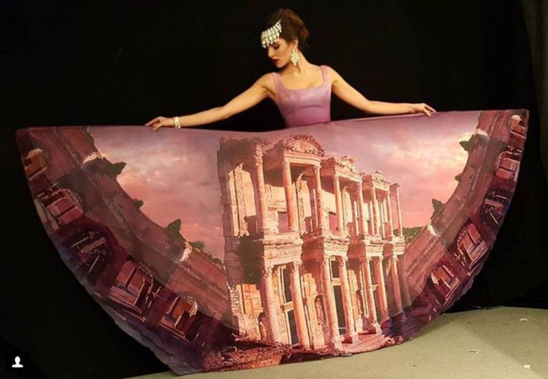 (半圆形的裙子上呈现的是土耳其著名古城以弗所(Ephesus))