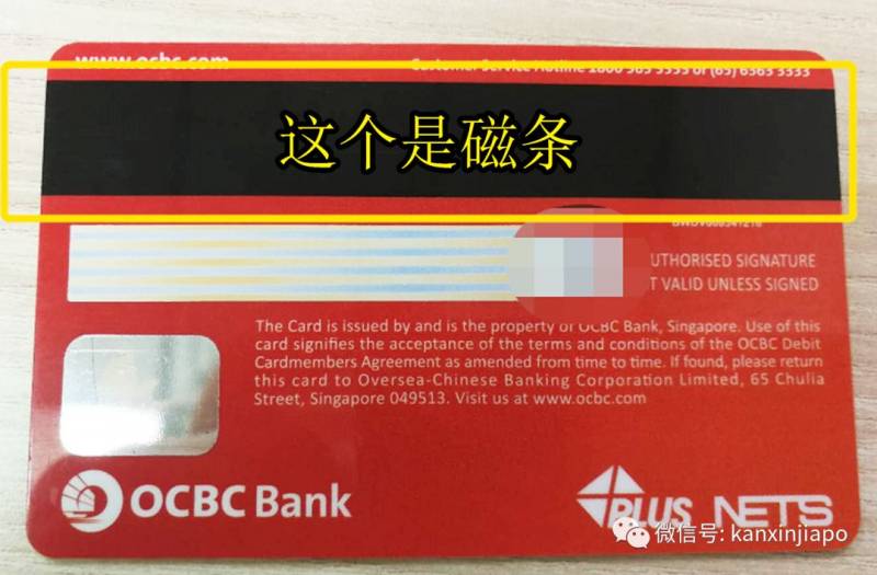 而在新加坡,磁条卡的使用非常普遍,即使银行卡上有芯片,卡上依旧附有磁条。举个例子: