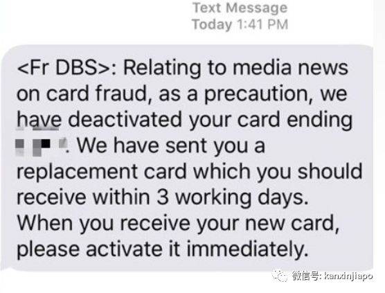 面对盗刷风险,目前新加坡的银行最常见方式是更换银行卡,或者将银行卡升级为芯片卡。今年“新保集团的事件”发生后,DBS银行就给信息泄露的用户发消息提醒,进行了银行卡更换。