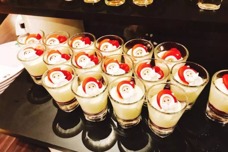 这一排排的圣诞老人甜点,气氛十足,一下子带出节日的喜庆, 看得出主厨也是尽了力。