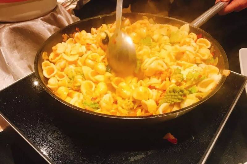 于是,你看到总经理Cavaliere Giovanni Viterale亲手煮意大利猫耳朵面,香浓的橄榄油番红花底,猫耳朵煮的香软入味。