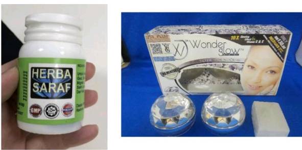 3月,品名为Herba Saraf、Wonderglow美白膏(分日夜间使用),还包含香皂,以及Taiti五合一护肤美容产品等三款产于马来西亚的保健品,查出违禁药物...