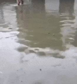 蔡厝港的积水淹没脚踝,雨棚形同虚设........