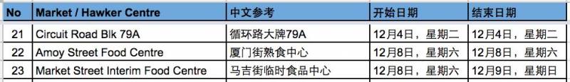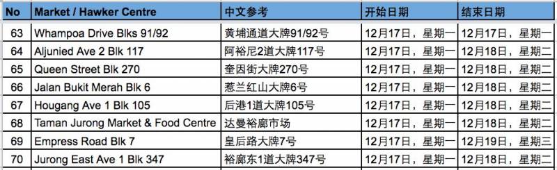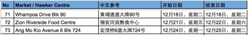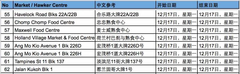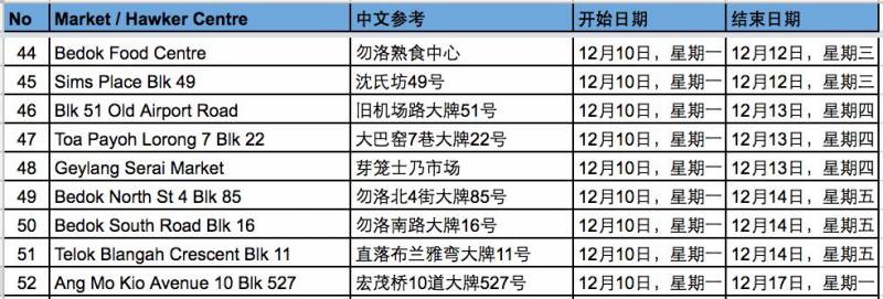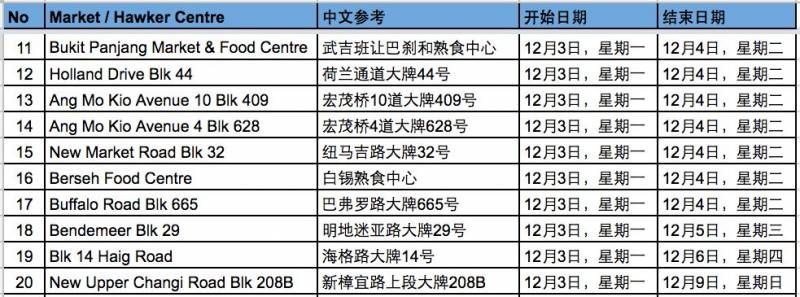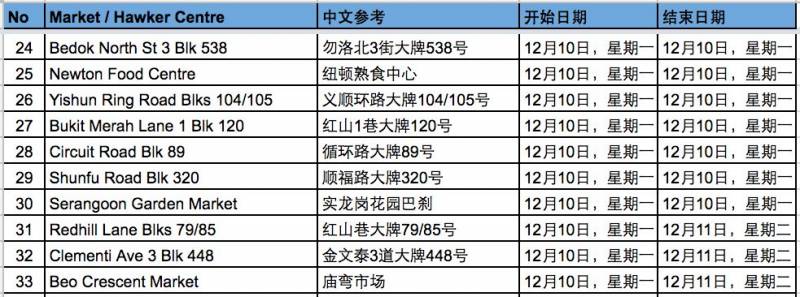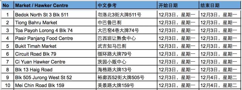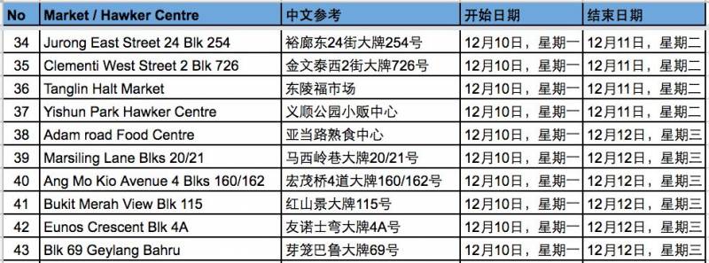 12月,国家环境局(NEA)仍将继续对食阁进行例行的大清扫。清扫期间,以下食阁将在这些日期里不营业。清扫时间主要集中在12月3日、10日和17日这几天。