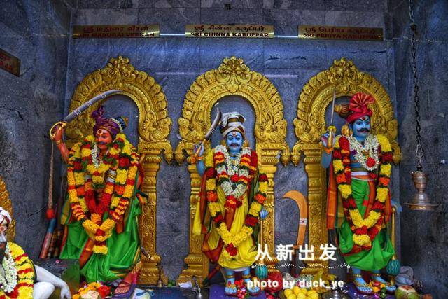 维拉玛卡里雅曼兴都庙(Sri Veeramakliaman Temple),建于1855年。特殊的彩绘门楼属典型的南印度建筑风格,门上高耸的塔楼上装饰许多立体的彩色神像,栩栩如生,让人不禁感叹工匠的技艺。