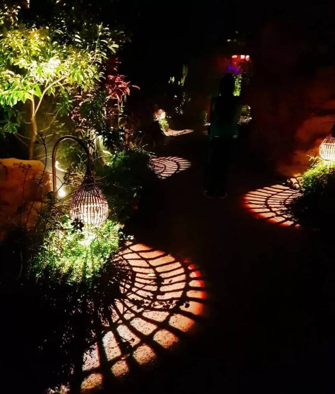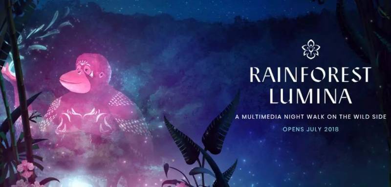 新加坡动物园Lumina Night Walk全长一公里,分为11个区域,多个观众体验项目,在本次的夜间展览中,动物都回到宿舍睡觉了,既不会影响动物的休息,所使用的发光技术,也不会影响到植物的正常生长。