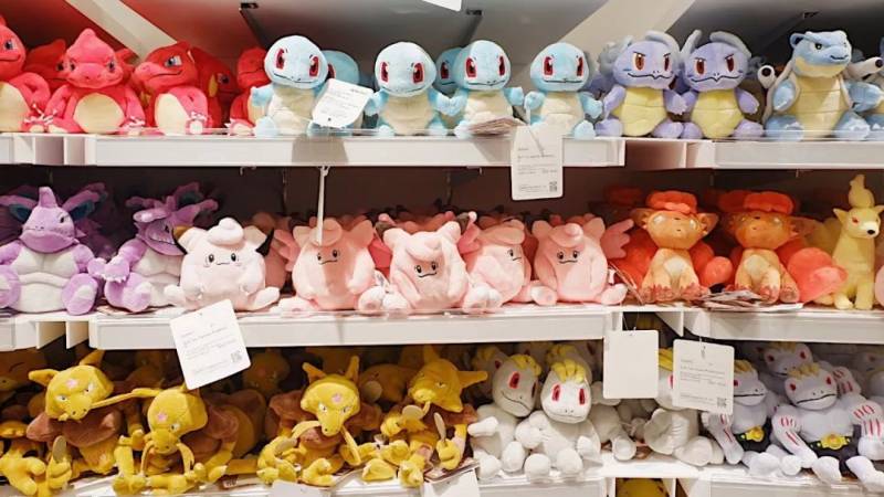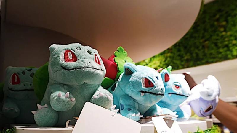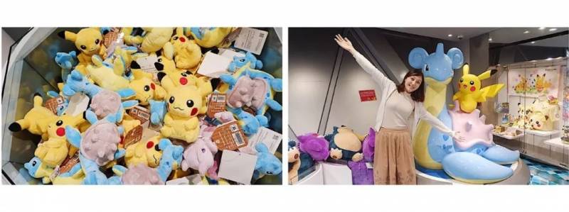就算是要排40分钟的队,仍然不能放弃。最后进到店里面,的确很酷炫诶,银幕上面的神奇宝贝们都成为了一个个玩偶;连店里面的装潢设计都是像神奇宝贝研究所一样。