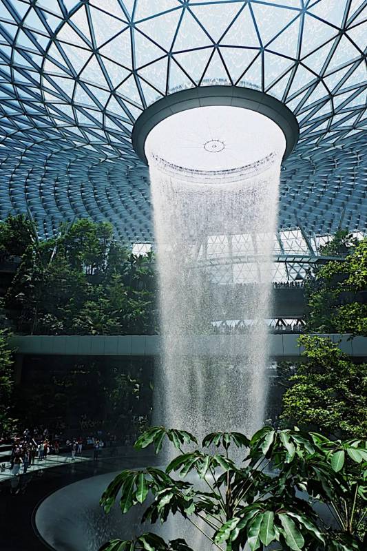 吃完饭了,就可以好好的逛街了。还是不能免俗,要先看一下这个打卡标志建筑。现场看还是很震撼的,最中间是室内大瀑布,如同屋顶空了一个大洞,水从那个洞倾盆而下。形成了一个巨大的圆柱。