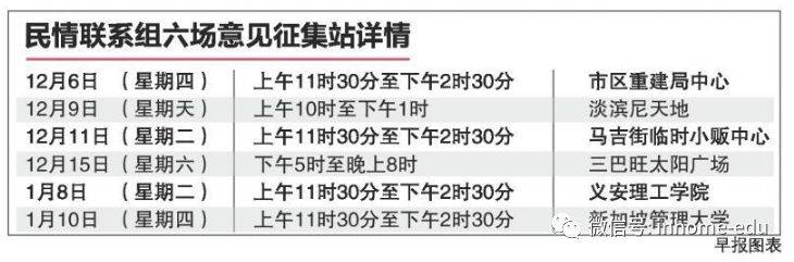 民情联系组也会在六个地点设立意见征集站,国人可前去向工作人员当面提出意见。