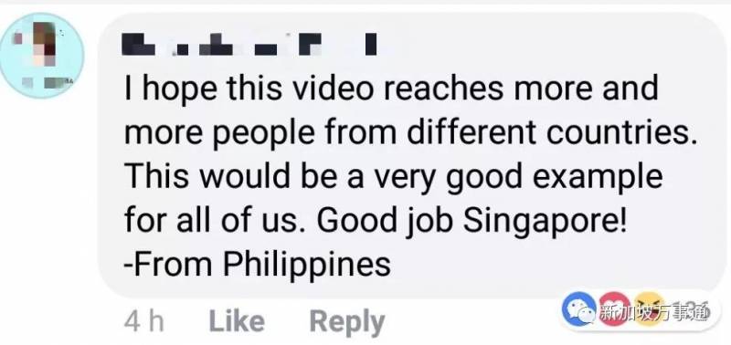 “我希望尽可能多的来此不同国家的人能看到这个视频。新加坡将是一个好榜样!干得好,新加坡!”