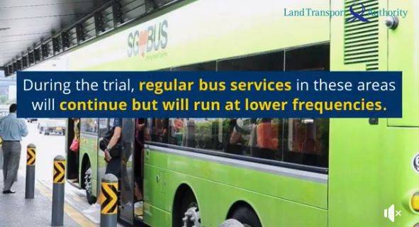 测试将在非繁忙时间(上午11时至下午3时、晚上8时30分至11时30分),特定区域进行,特定区域分别是:裕群(253、255和257号巴士)以及珊顿道和滨海南(400和403号巴士)。