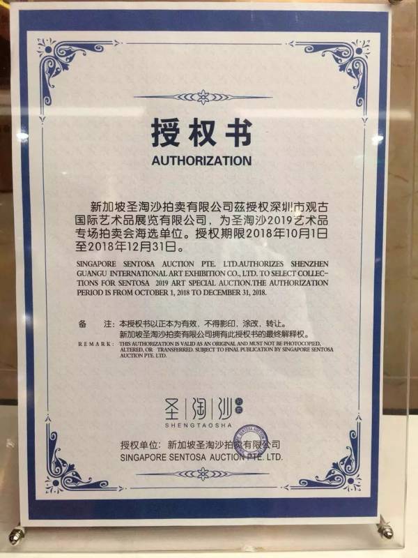 新加坡圣淘沙拍卖有限公司亚洲巡回征集现已正式启动,深圳作为中国最具经济活力和影响力的经济特区,艺术品发展已经走到了国际的前端。圣淘沙拍卖公司自成立以来一直与深圳藏家保持着紧密合作,广纳博览共同发展艺术事业。本次海选单位深圳市观古国际艺术品展览有限公司 。