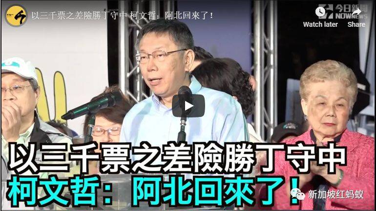 好了,大家说完哈哈哈哈大笑完,都明白柯文哲是大学教授,人家就是不一样啦。我们只是做工的低下层的人,能够买得起羔呸还有一点啤酒就很好了。我们新加坡五年一次也有选举,不过那个热闹是比不上的,还有我们也没有谈得上了不起有魅力的阿伯啦,口才好,有学问。