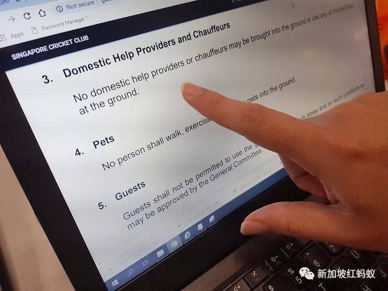 有网民日前到位于政府大厦广场旁的新加坡板球俱乐部(Singapore Cricket Club),被告知那里不准女佣入内,他们一家只好快速用餐,并为女佣打包。(海峡时报)