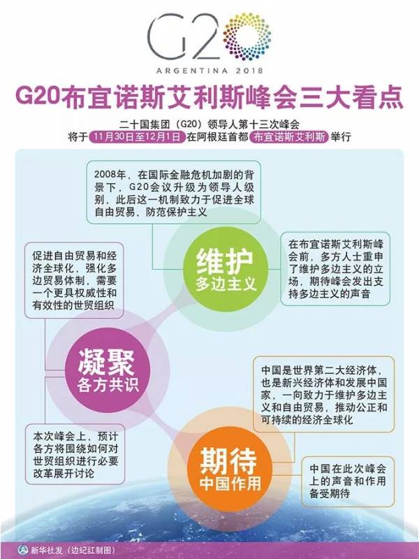 二十国集团(G20)领导人第十三次峰会将于11月30日至12月1日在阿根廷首都布宜诺斯艾利斯举行。峰会以“为公平与可持续发展凝聚共识”为主题,将主要讨论世界经济、贸易和投资、数字经济、可持续发展、基础设施和气候变化等议题。