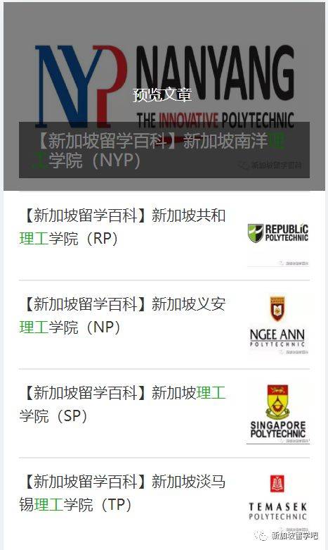 c) 新加坡理工学院与英、加、美、澳各名校交流、合作,互相承认学历,派遣在校学生赴海外实习,毕业后可申请进入合作院校进行深造。如澳洲国立大学、雪梨大学、英国帝国学院、英国曼彻斯特理工学院等知名大学