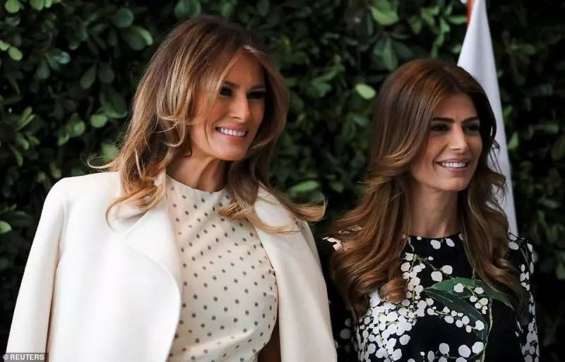 当天的美国第一夫人梅拉尼娅内搭一套白底黑色的Dior波点连衣裙,白色带一点米色的暖暖的色调正好中和了梅拉尼娅平时看起来高贵冷艳的风格,配上这开怀的笑容,梅拉尼娅赢了!