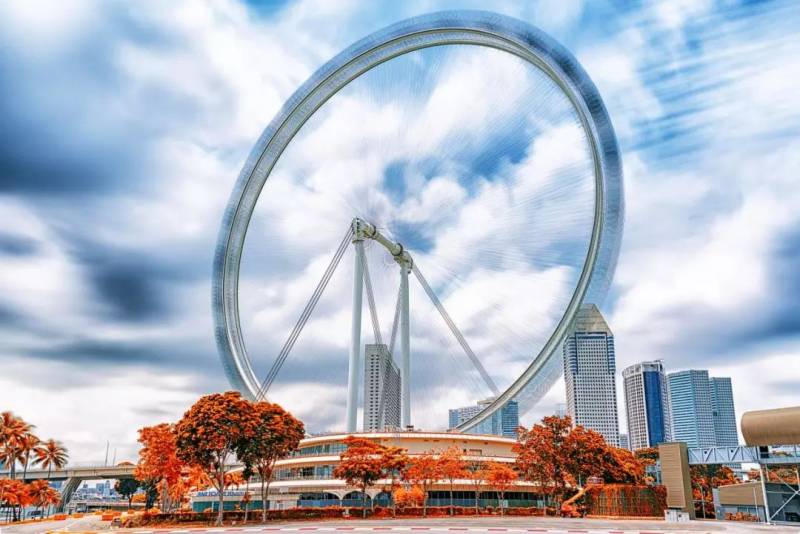 许多城市的摩天轮都是必去的景点,新加坡的摩天轮是全亚洲最大的摩天轮。从这个巨大的观景摩天轮上可 360 度饱览新加坡全城美景,如果晴空万里,甚至还能远眺马来西亚和印度尼西亚海岸线。