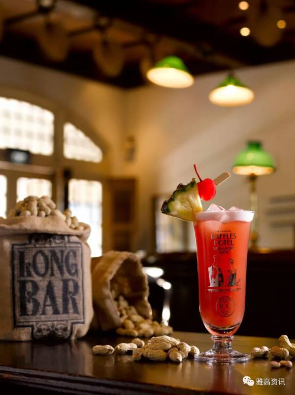 长廊酒吧每日的营业时间为上午11:00至晚上11:00,菜单品类丰富,从创意调配鸡尾酒到备受喜爱的新加坡司令鸡尾酒,应有尽有。访客和住客可以延续传统,从麻袋中直接取用花生,把花生壳抛掷在地板上,完整地享受在长廊酒吧中的放松体验。