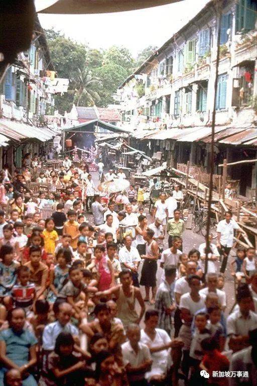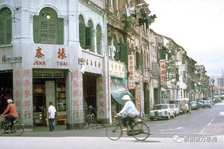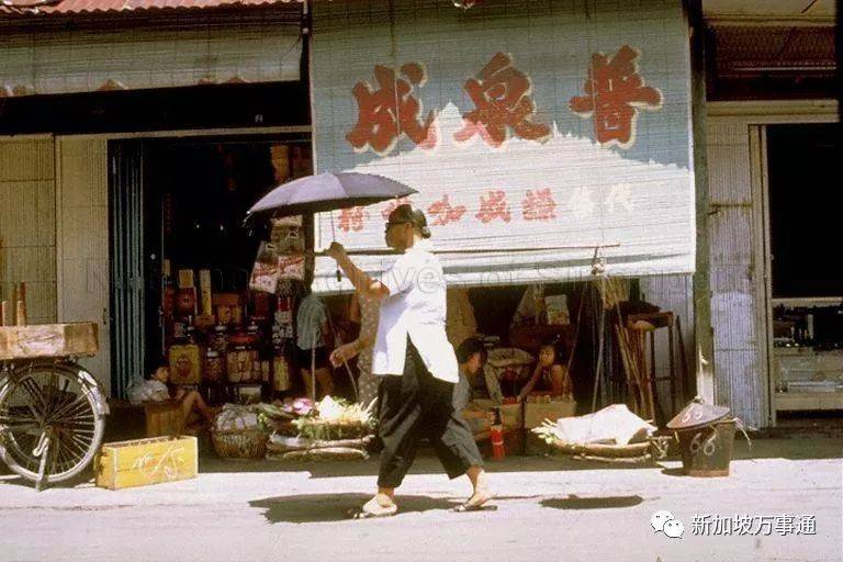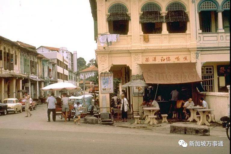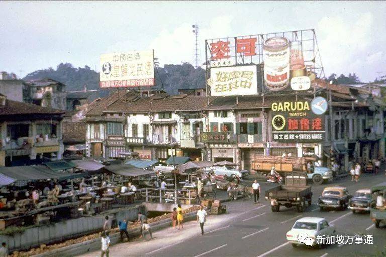 街边的摊贩有序的排在路的两边,中间空出足够的位置供行人和车辆经过。看来新加坡的秩序从上世纪就已经很井然有序了呢。