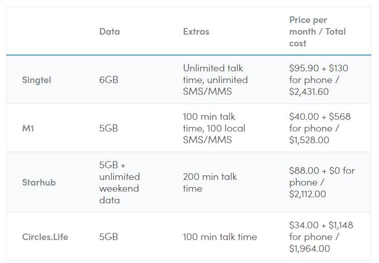 3GB: Singtel – 他们的配套是最实惠的 $20/月 (注意: 没通话)