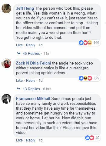 反而是上传视频者遭到网民讨伐,有人认为他偷拍的行为比女子更不如,有人觉得他应该直接阻止女子而不是散播视频羞辱她。还有人要求他删除视频,甚至说警察应该逮捕他。