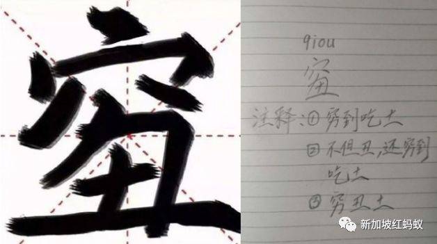 qiong+chou=qiou(读音),字义:又穷又丑、不但丑,还穷到吃土。