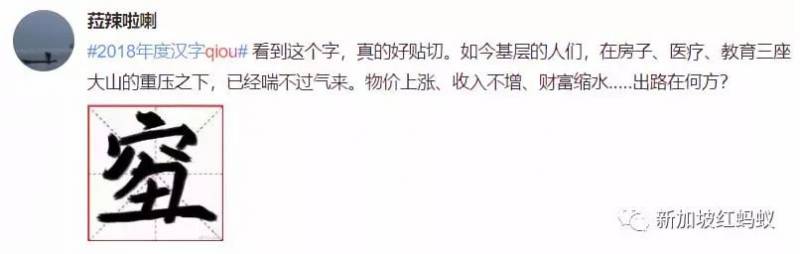 网友“菈辣啦喇”也觉得这个字形象地道出了时下工薪阶层被压得喘不过气也无法看到出路的糗境: