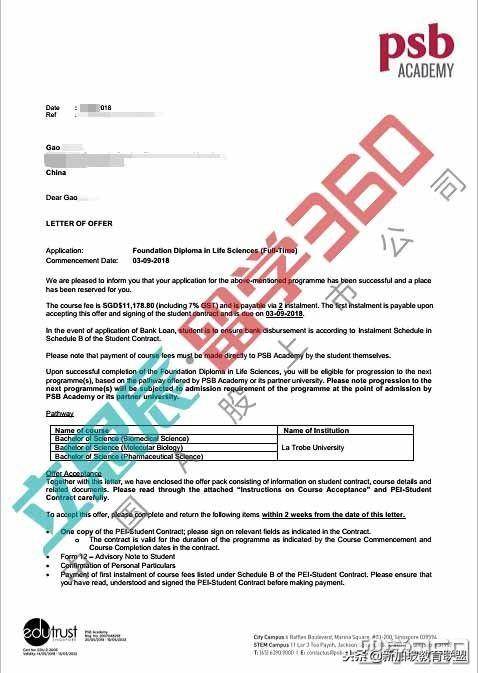 新加坡PSB学院OFFER展示