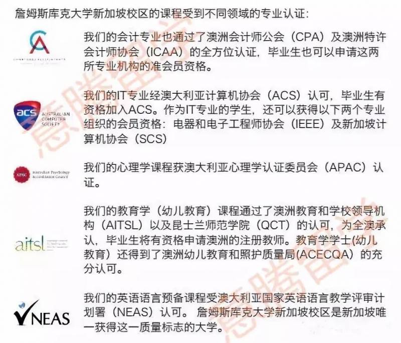 澳洲詹姆斯库克新加坡校区荣誉认证