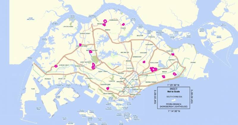 红色标记的区域为患者出现比较集中的地方。图片来自新加坡环境局(NEA)