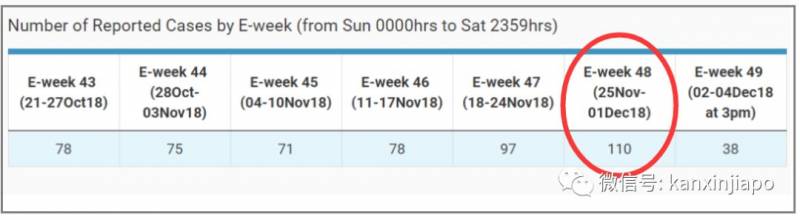 过去一周(11.25—12.01),新加坡新增登革热患者110例,这是今年首次“周患者”超过100例。