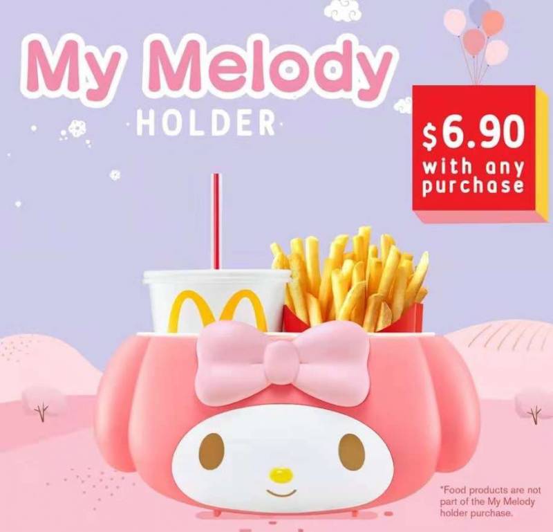 “My Melody饮料薯条桶”今天凌晨4时开始在全岛各大麦当劳分店贩售,每人限制购买5个,每个售价6元9角。