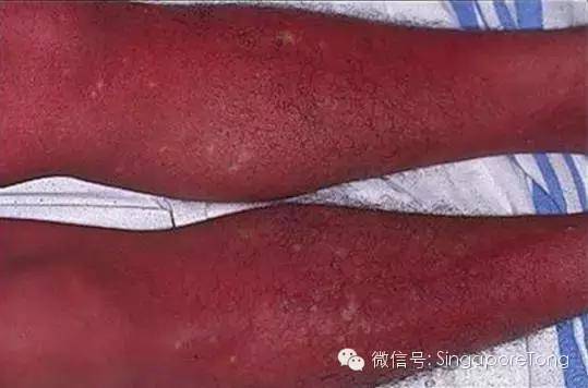 骨痛热症在起初的症状过后,会开始冒出不同种类的红疹或引起瘙痒,身体浮现犹如龙虾般颜色的皮疹,严重的可能会有溢血迹象。