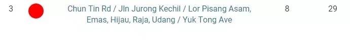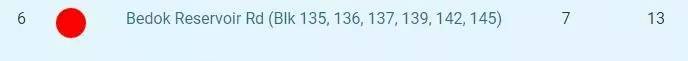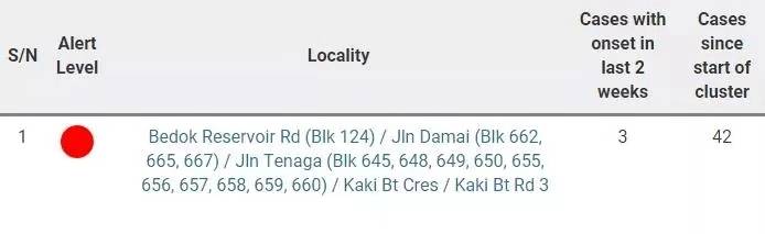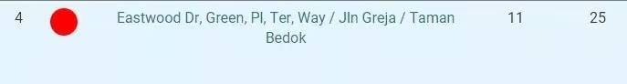 其中骨热痛症高发区有6处。而勿洛蓄水池路(Bedok Reservoir Rd)最多,共有42例。