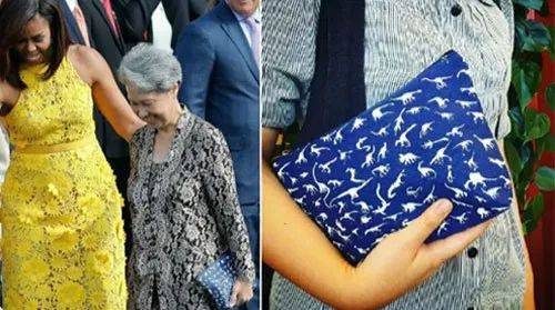穿黄色礼服的是前美国第一夫人米歇尔奥巴马,灰色衣服的是何晶,她手中的恐龙拿手包被网友扒出来只需要14.9新币