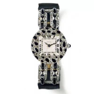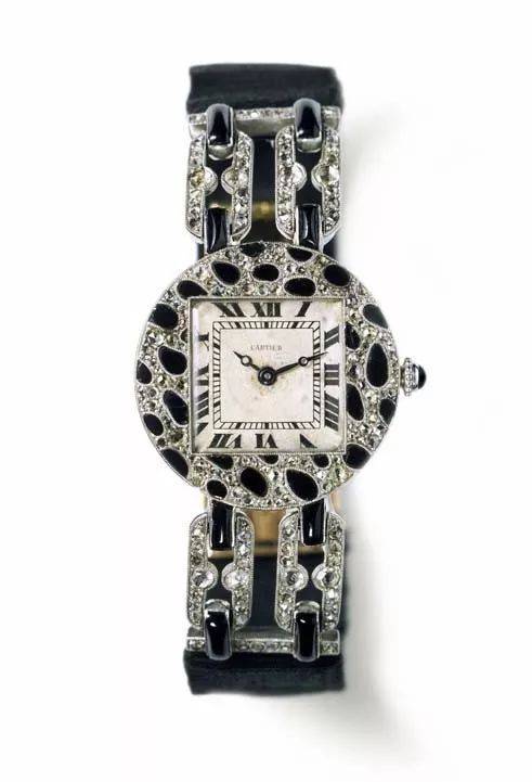 一枚制作于1914年的“豹纹”图案腕表也将在本次展览亮相,这是 Cartier 最早的“猎豹”主题单品,受到兽皮装饰的启发,以交错镶嵌的缟玛瑙和钻石来模仿豹纹,圆形表壳内搭载 LeCoultre 机芯。
