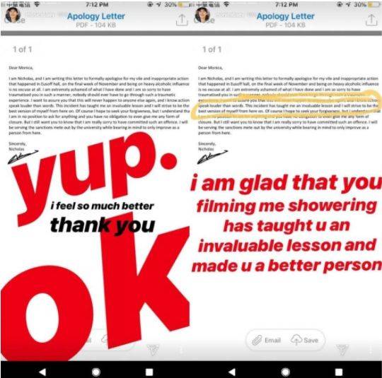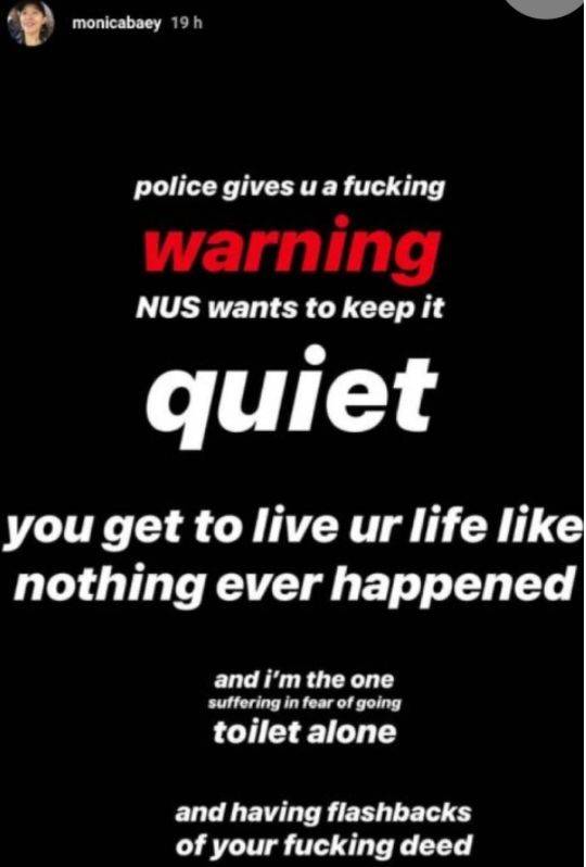 这起事件发生在去年11月,地点是新加坡国立大学尤索夫宿舍,该名23岁的国大传播系四年级女学生,是通过Instastory限时动态做出控诉,并公开男生的身份。