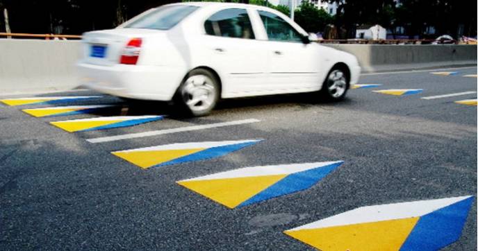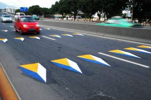三维标记可以使驾驶人士看路面显得狭窄,有助于提醒驾车者减速行驶。