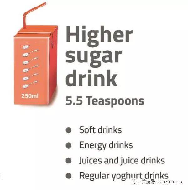 根据新加坡保健促进局的规定,如果250毫升的饮料含5.5茶匙以上的糖分,便归为高糖饮料~汽水、能量饮料、鲜榨果汁、酸奶等饮料通通中招.......