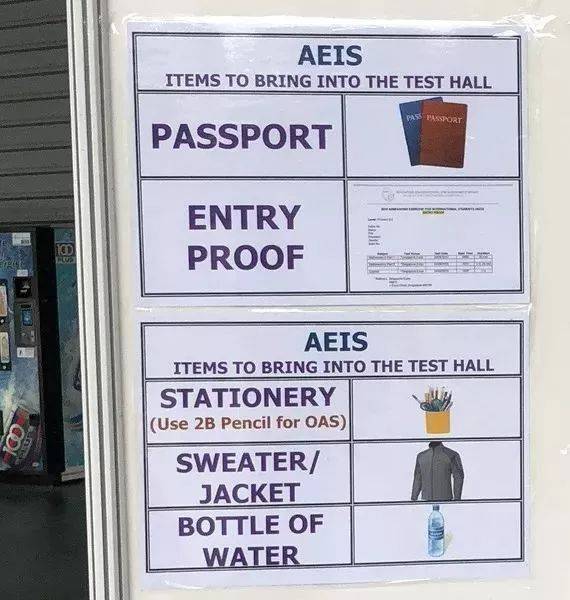 新加坡博览中心举行的AEIS考试考场信息牌